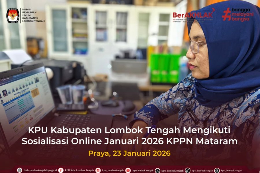 #TemanPemilih Jumat (23/01/2026) KPU Kabupaten Lombok Tengah mengikuti Sosialisasi Online Januari 2026 yang diselenggarakan oleh KPPN Mataram. Kegiatan ini diikuti oleh Pejabat Pembuat Komitmen (PPK), PPSPM, Bendahara, dan Operator Sakti . Adapun agenda dalam kegiatan ini yaitu Press Release APBN dan TKD Wilayah Kerja KPPN Mataram Bulan Desember 2025, Monitoring, Evaluasi, Analisa Pelaksanaan Anggaran serta Digital Payment dan Marketplace (MANDALIKA) Bulan Desember 2025, Sosialisasi Langkah – Langkah Strategis Tahun Anggaran 2026, Refreshment Implementasi Aplikasi SAKTI 2026, serta Sosialisasi Seleksi Perpindahan dari Jabatan Lain ke dalam Jabatan Fungsional Analis Pengelolaan Keuangan Anggaran Pendapatan dan Belanja Negara dan Jabatan Fungsional Pranata Keuangan Anggaran Pendapatan dan Belanja Negara Periode I - Tahun 2026. Melalui kegiatan ini, diharapkan peserta memperoleh pemahaman terkait kebijakan pengelolaan keuangan negara, serta mampu meningkatkan kualitas pengelolaan anggaran yang akuntabel, transparan, dan sesuai ketentuan pada Tahun Anggaran 2026. #KPUMelayani #KPULoteng ....