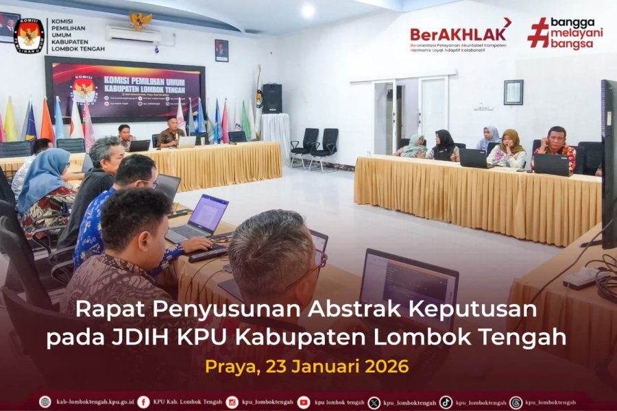 #TemanPemilih Jumat (23/01/2026) Dalam rangka optimalisasi pengelolaan Jaringan Dokumentasi dan Informasi Hukum (JDIH) KPU Kabupaten Lombok Tengah diadakan rapat penyusunan Abstrak Keputusan yang akan diunggah pada laman JDIH KPU Kabupaten Lombok Tengah bertempat di aula kantor KPU Kabupaten Lombok Tengah. Abstrak memiliki peranan yang sangat penting dalam pengunggahan dokumen hukum di JDIH. Dalam konteks pengelolaan JDIH yang baik, abstrak bukan sekadar ringkasan, melainkan elemen kunci dalam memberikan kepastian hukum dan aksesibilitas informasi. Kegiatan ini dipimpin oleh Sekretaris, dihadiri oleh Kasubbag, beserta seluruh staf. #KPUMelayani #KPULoteng ....