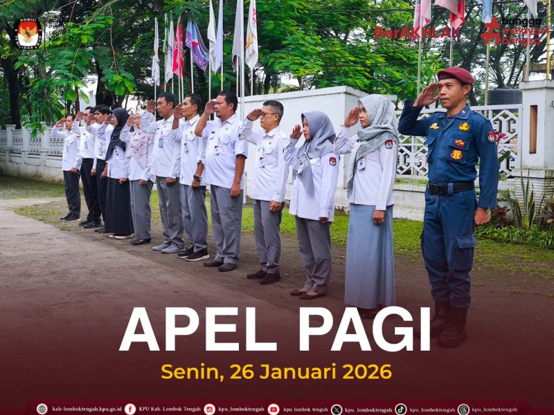 #TemanPemiih Senin, 26 Januari 2026 KPU Kabupaten Lombok Tengah melaksanakan Apel rutin setiap hari Senin Apel pagi dilaksanakan di halaman Kantor KPU Kabupaten Lombok Tengah diikuti oleh Kasubbag dan seluruh staf Sekretariat KPU Kabupaten Lombok Tengah. Apel dipimpin oleh Kasubbag Hukum dan SDM KPU Kab. Lombok Tengah ....