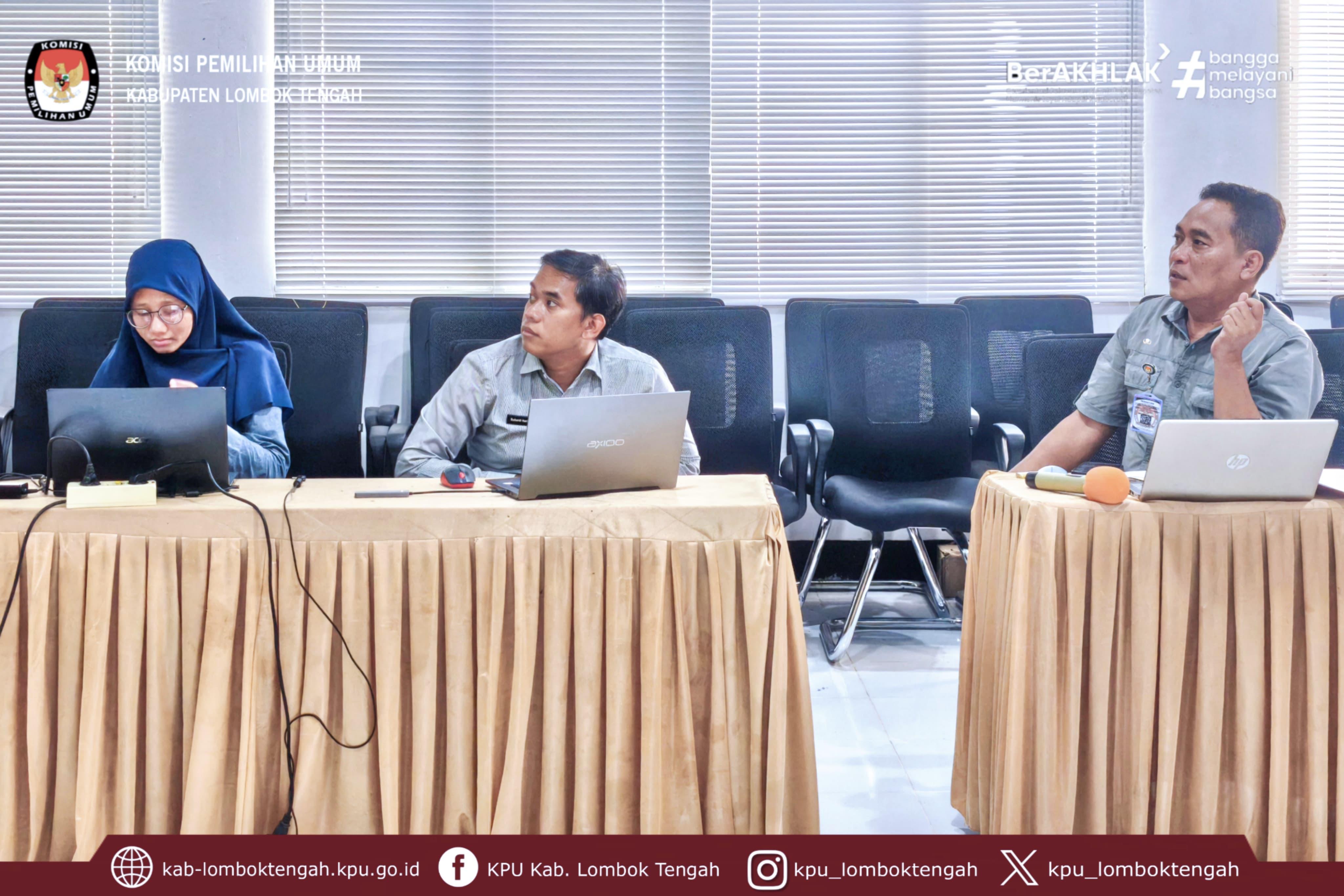 Rapat dihadiri oleh Sekretaris KPU Kabupaten Lombok Tengah, para Kasubbag dan staf, bertempat di aula kantor KPU Kabupaten Lombok Tengah.