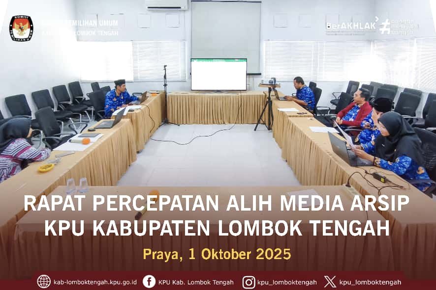 Untuk mempercepat proses pengelolaan arsip, KPU Kabupaten Lombok Tengah menyelenggarakan Rapat Percepatan Alih Media Arsip yang melibatkan para operator kearsipan pada setiap Sub Bagian. Rabu (01/10/2025)