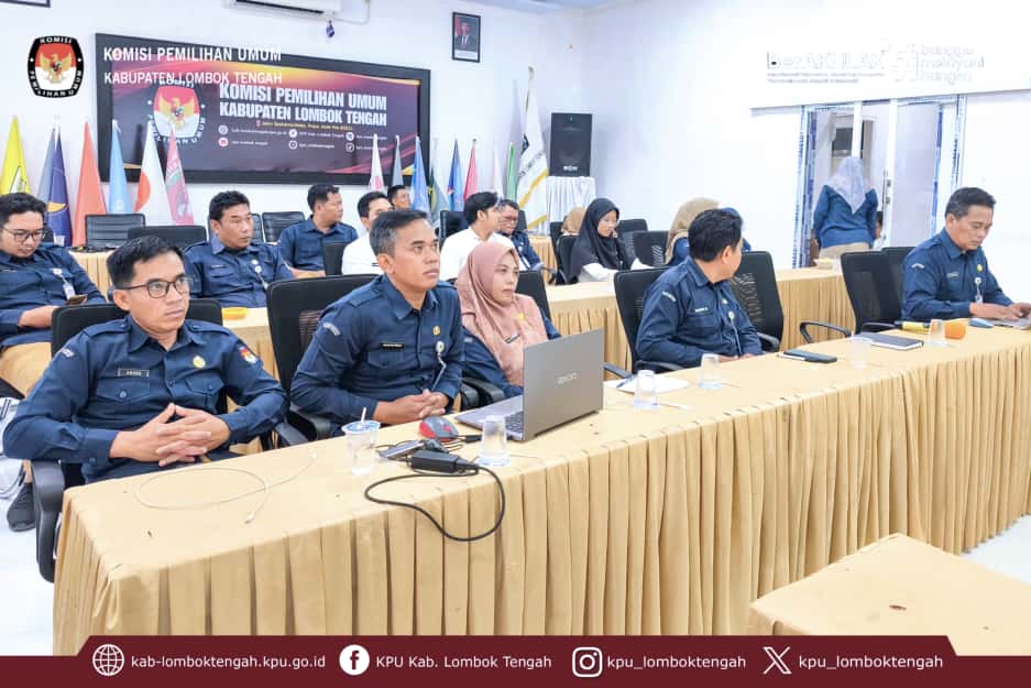 Selasa (07/10/2025) KPU Kabupaten Lombok Tengah mengikuti Kegiatan Evaluasi Efektivitas Pengelolaan dan Penataan Arsip serta Implementasi Aplikasi SRIKANDI di lingkungan KPU Provinsi dan KPU Kabupaten/Kota se-Nusa Tenggara Barat. Kegiatan ini diselenggarakan oleh KPU Provinsi Nusa Tenggara Barat secara daring melalui Zoom Meeting, dan diikuti oleh Sekretaris, para Kasubbag, serta seluruh Staf Sekretariat KPU Kabupaten Lombok Tengah bertempat di aula kantor KPU Kabupaten Lombok Tengah.