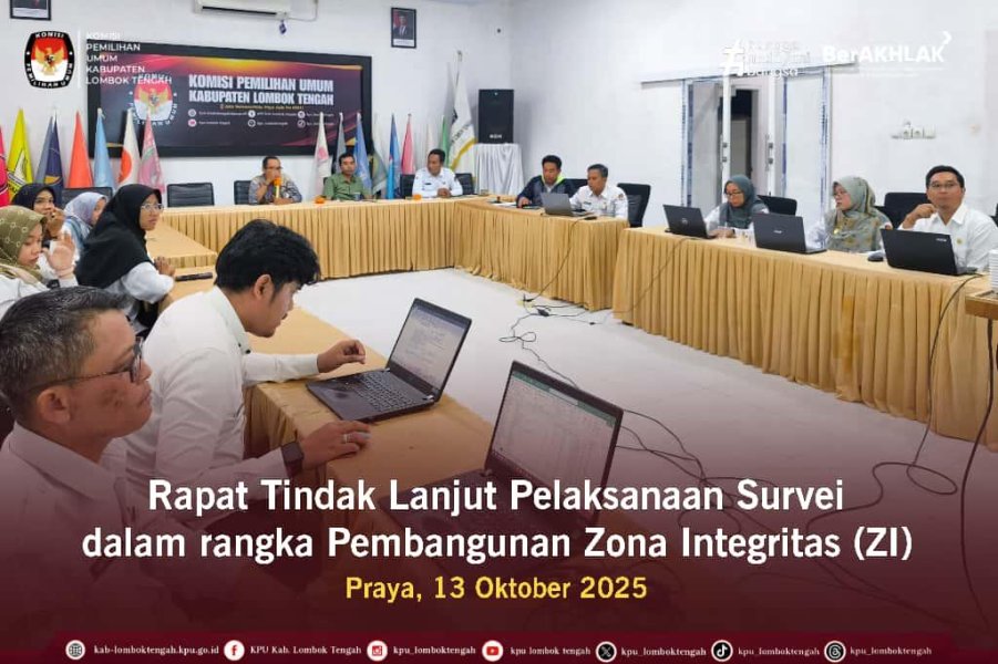 KPU Kabupaten Lombok Tengah mengadakan Rapat mematangkan Persiapan Pelaksanaan Survei Persepsi Kualitas Pelayanan (SPKP) dan Survei Persepsi Anti Korupsi (SPAK) dalam rangka Pembangunan Zona Integritas (ZI),pada Senin (13/10/2025).