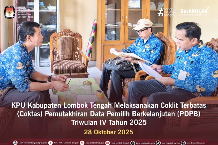 Dalam rangka kegiatan Pemutakhiran Daftar Pemilih Berkelanjutan (PDPB) Triwulan IV, KPU Kabupaten Lombok Tengah melaksanakan kegiatan Coklit Terbatas (Coktas), Selasa (28/10/2025).
