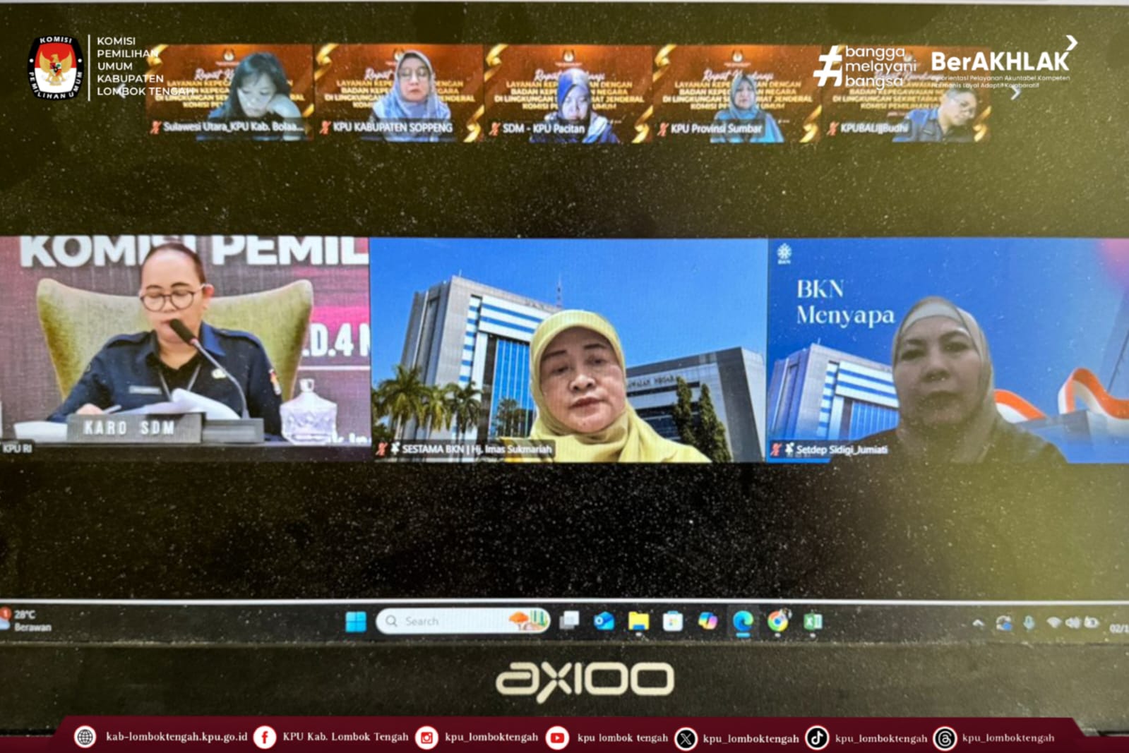 Kasubag Hukum dan SDM Sekretariat KPU Kabupaten Lombok Tengah mengikuti Rapat Koordinasi Layanan Kepegawaian dengan Badan Kepegawaian Negara di lingkungan Sekretariat Jenderal Komisi Pemilihan Umum, secara daring melalui Zoom Meeting, yang diselenggarakan oleh Sekretariat Jenderal KPU RI.