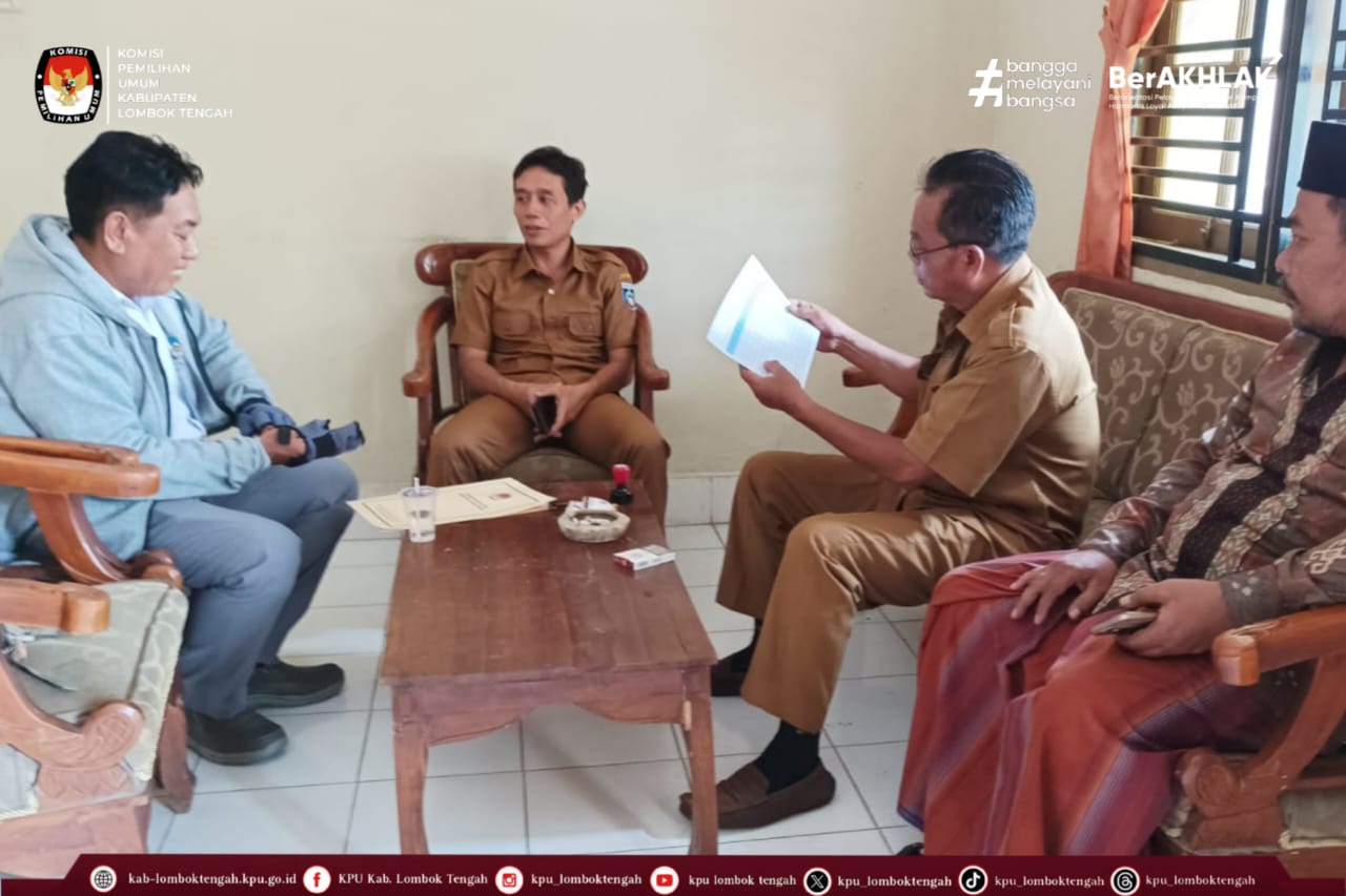 Tim Coktas KPU Kabupaten Lombok Tengah berkoordinasi dengan pihak kantor desa setempat untuk memverifikasi kebenaran data Coktas.