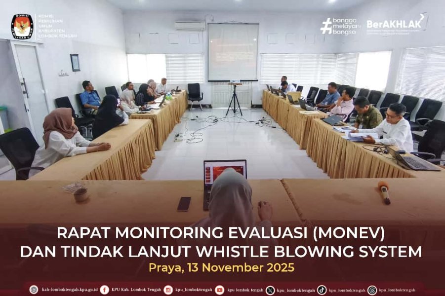 Dalam rangka memperkuat sistem pengawasan internal, KPU Kabupaten Lombok Tengah menggelar Rapat Monitoring Evaluasi (Monev) dan Tindak Lanjut Whistle Blowing System (WBS) pada Kamis (13/11/2025).