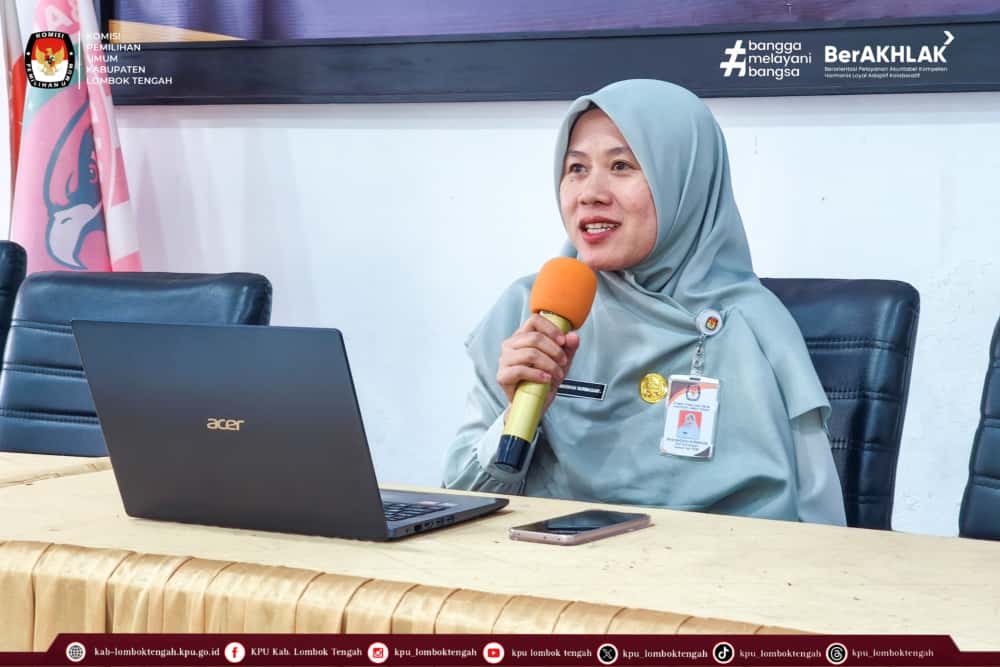 Pada kesempatan ini, Staf Subbagian Teknis Penyelenggaraan Pemilu dan Hupmas, Baiq Madihah Nurmasari memaparkan hasil monev dan tindak lanjut implementasi Whistle Blowing System di KPU Kabupaten Lombok Tengah.