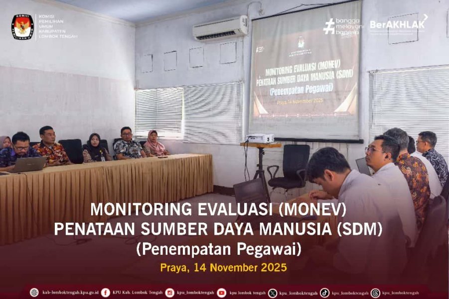 Jumat (14/11/2025) Ketua KPU Kabupaten Lombok Tengah membuka kegiatan Rapat Monitoring dan Evaluasi (Monev) Penempatan Pegawai di lingkungan KPU Kabupaten Lombok Tengah.