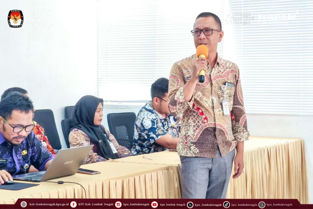 Staf yang membidangi SDM, Lalu Idham Khalid menyampaikan hasil monev penempatan pegawai di Lingkungan KPU Kabupaten Lombok Tengah.