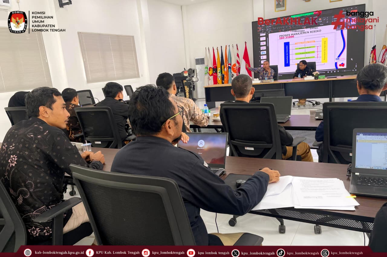 Rabu (26/11/2025) Kadiv Hukum dan Pengawasan beserta Kasubbag Teknis Penyelenggaraan Pemilu dan Hupmas KPU Kabupaten Lombok Tengah mengikuti Bimbingan Teknis Analisis Risiko dan Penyusunan Daftar Risiko (Risk Register) di lingkungan KPU Provinsi dan KPU Kabupaten/Kota se-NTB Tahun 2025.