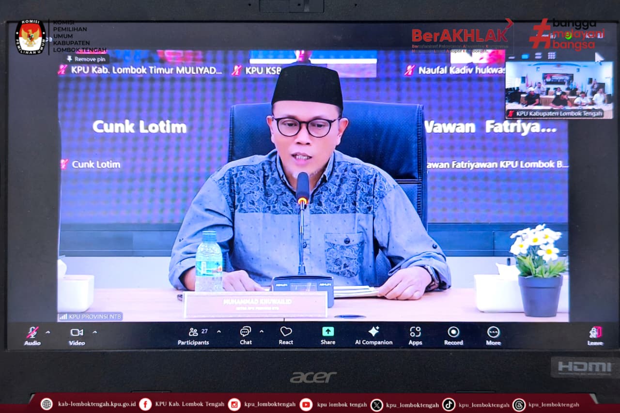 Sabtu (29/11/2025) KPU Kabupaten Lombok Tengah mengikuti Rapat Evaluasi Pembangunan Zona Integritas (ZI) KPU Kabupaten/Kota se-Nusa Tenggara Barat yang diselenggarakan oleh KPU Provinsi NTB secara daring melalui Zoom Meeting, bertempat di aula kantor.