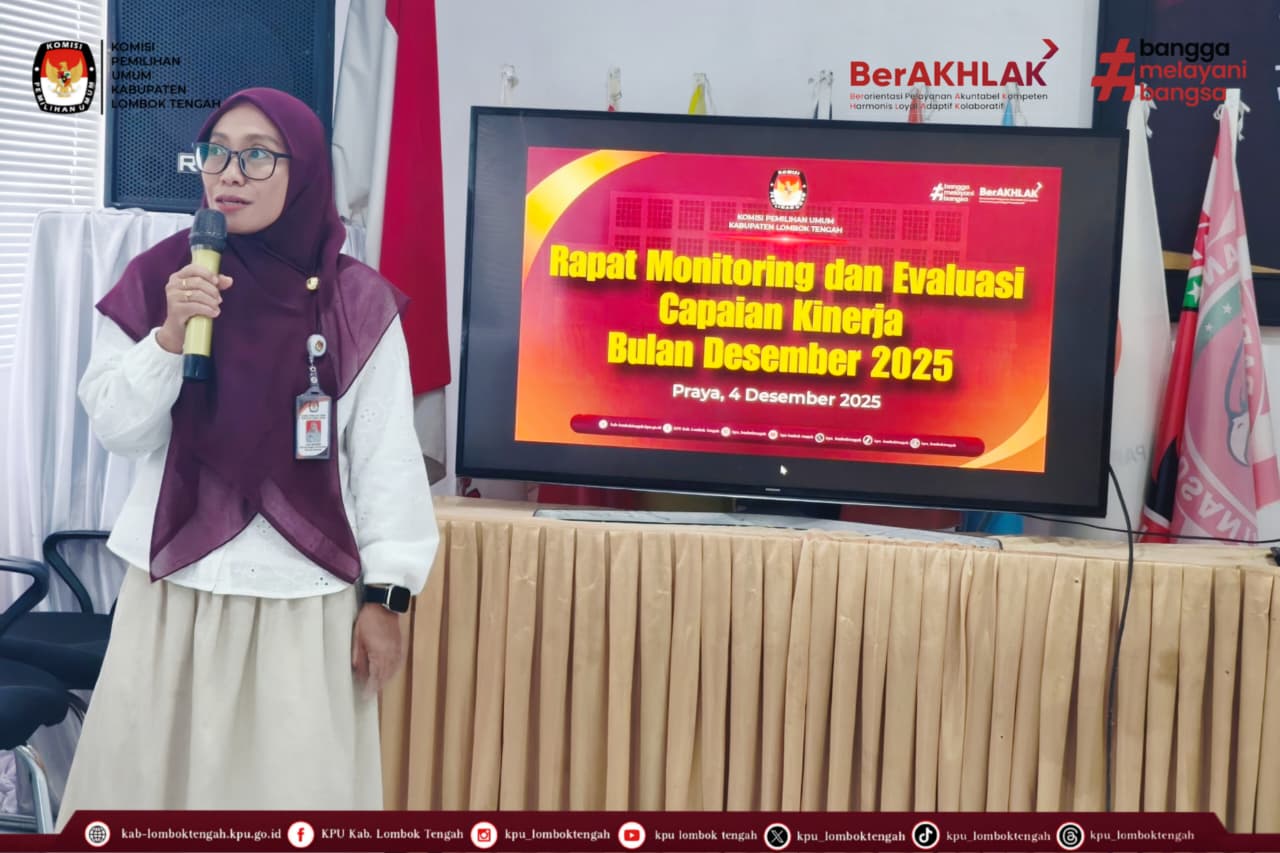 Kamis (04/12/2025) KPU Kabupaten Lombok Tengah mengadakan Rapat Monitoring dan Evaluasi Capaian Kinerja Bulan Desember 2025 sebagai bentuk komitmen dalam meningkatkan kualitas pelaksanaan tugas dan memastikan target kinerja organisasi berjalan sesuai rencana.