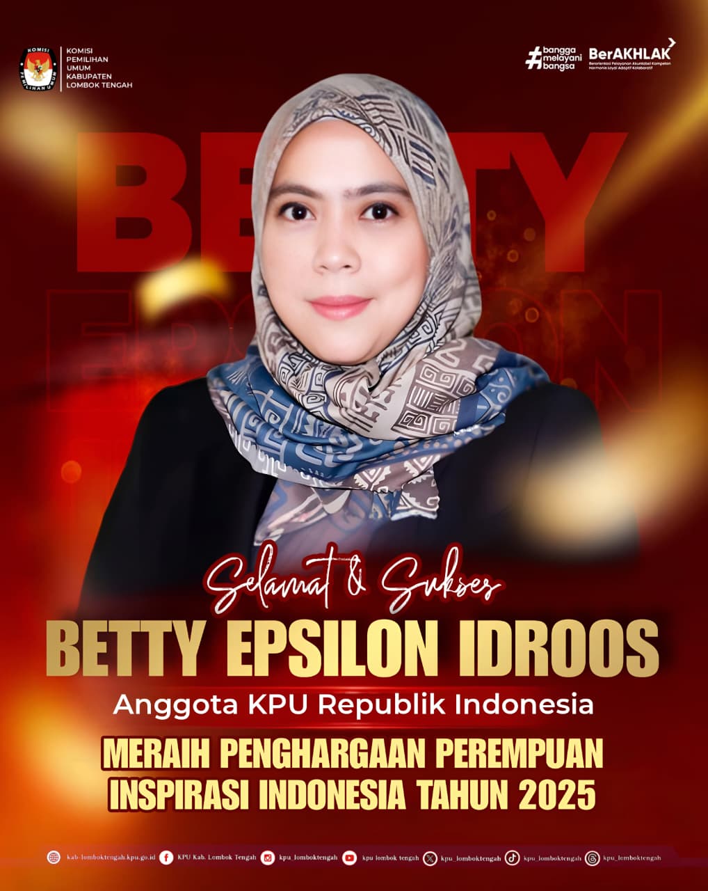 KPU Kabupaten Lombok Tengah Mengucapkan Selamat kepada Ibu Betty Epsilon Idroos, Anggota KPU RI atas diraihnya Penghargaan Perempuan Inspirasi Indonesia Tahun 2025