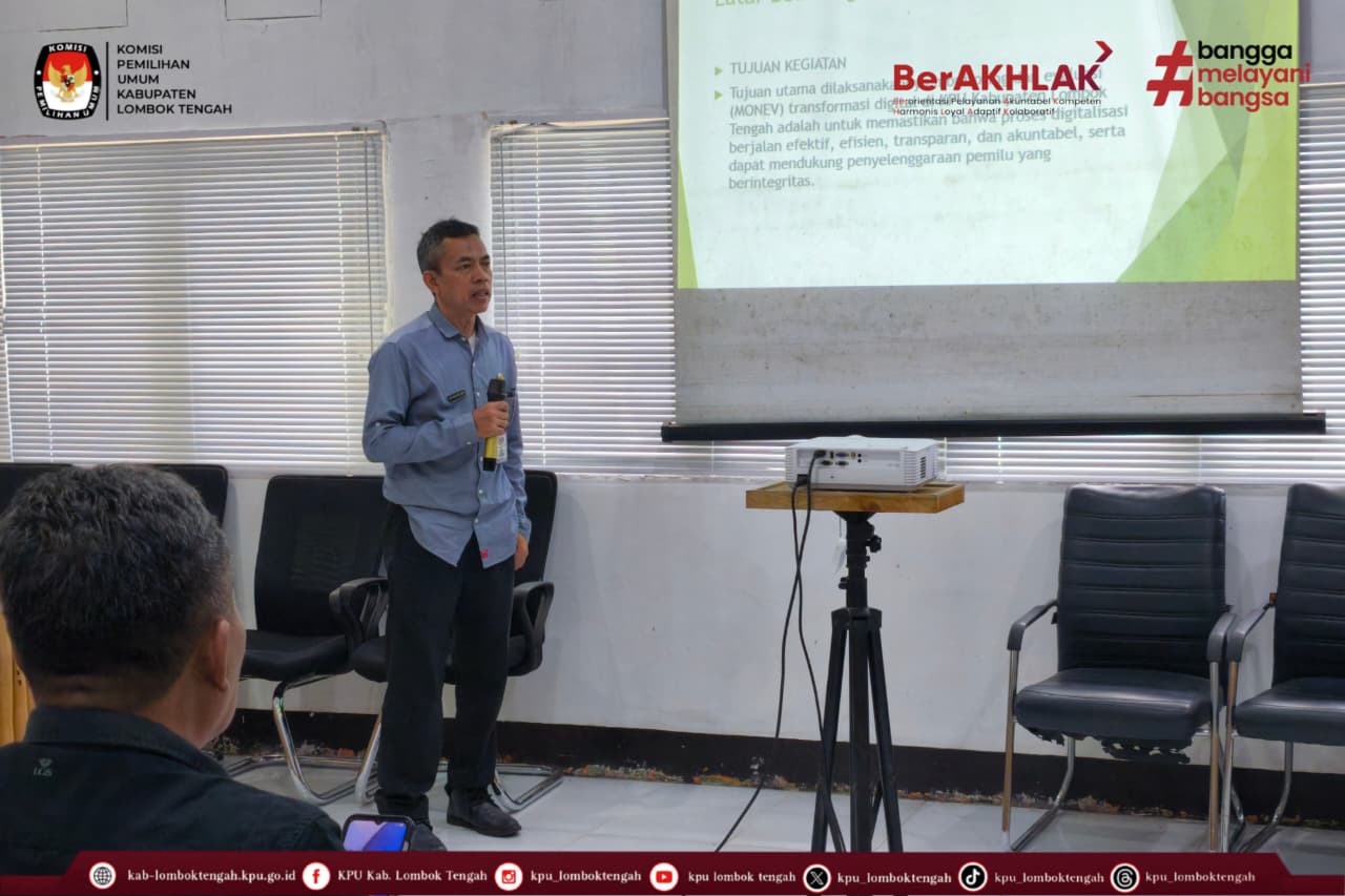 KPU Kabupaten Lombok Tengah pada Kamis (04/12/2025) mengadakan Rapat Monitoring dan Evaluasi (Monev) Transformasi Digital Bulan Desember 2025 sebagai upaya memperkuat pemanfaatan teknologi informasi dalam mendukung pelayanan dan tata kelola organisasi.