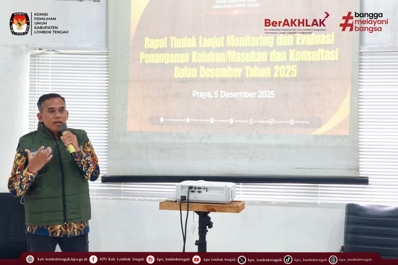 KPU Kabupaten Lombok Tengah Mengadakan Rapat Tindak Lanjut Monitoring dan Evaluasi (Monev) Penanganan Keluhan/Masukan dan Konsultasi Bulan Desember 2025