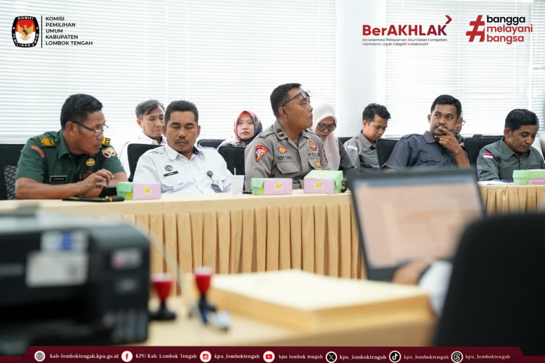 Rapat Pleno Terbuka ini dihadiri oleh Ketua dan Anggota KPU Kabupaten Lombok Tengah, Bawaslu Kabupaten Lombok Tengah, Polres Lombok Tengah, KODIM 1620 Lombok Tengah, Dinas Dukcapil Kabupaten Lombok Tengah, Dinas Sosial Kabupaten Lombok Tengah, Dinas Tenaga Kerja dan Transmigrasi Kabupaten Lombok Tengah, Badan Pusat Statistik Kabupaten Lombok Tengah, Rutan Kelas II.B Praya, Sekretaris KPU Kabupaten Lombok Tengah, para Kasubbag, Operator Sidalih dan Staf.