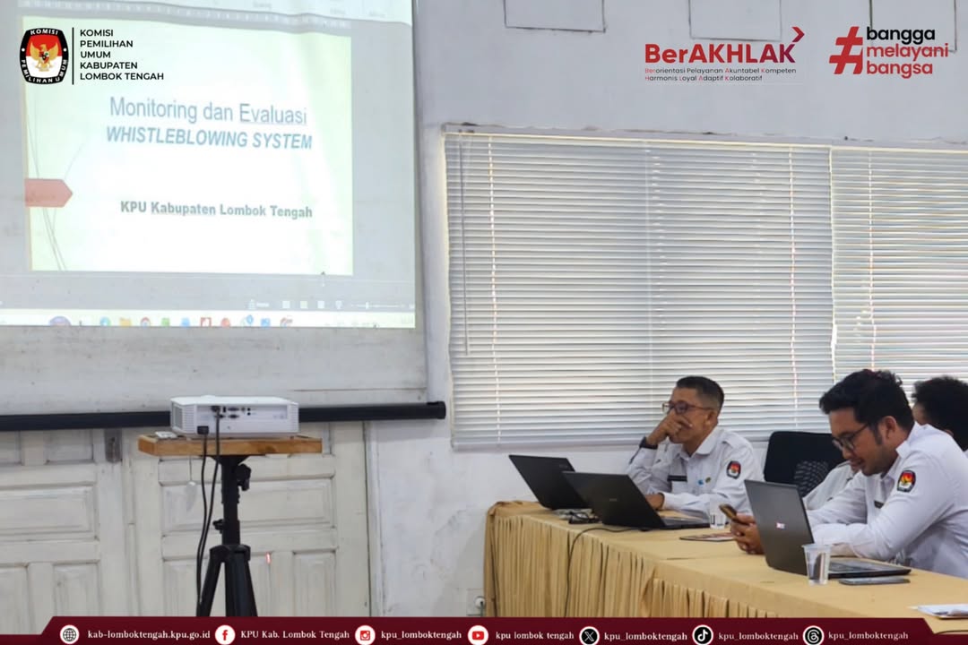 KPU Kabupaten Lombok Tengah Mengadakan Rapat Monitoring dan Evaluasi (Monev) Whistle Blowing System (WBS)
