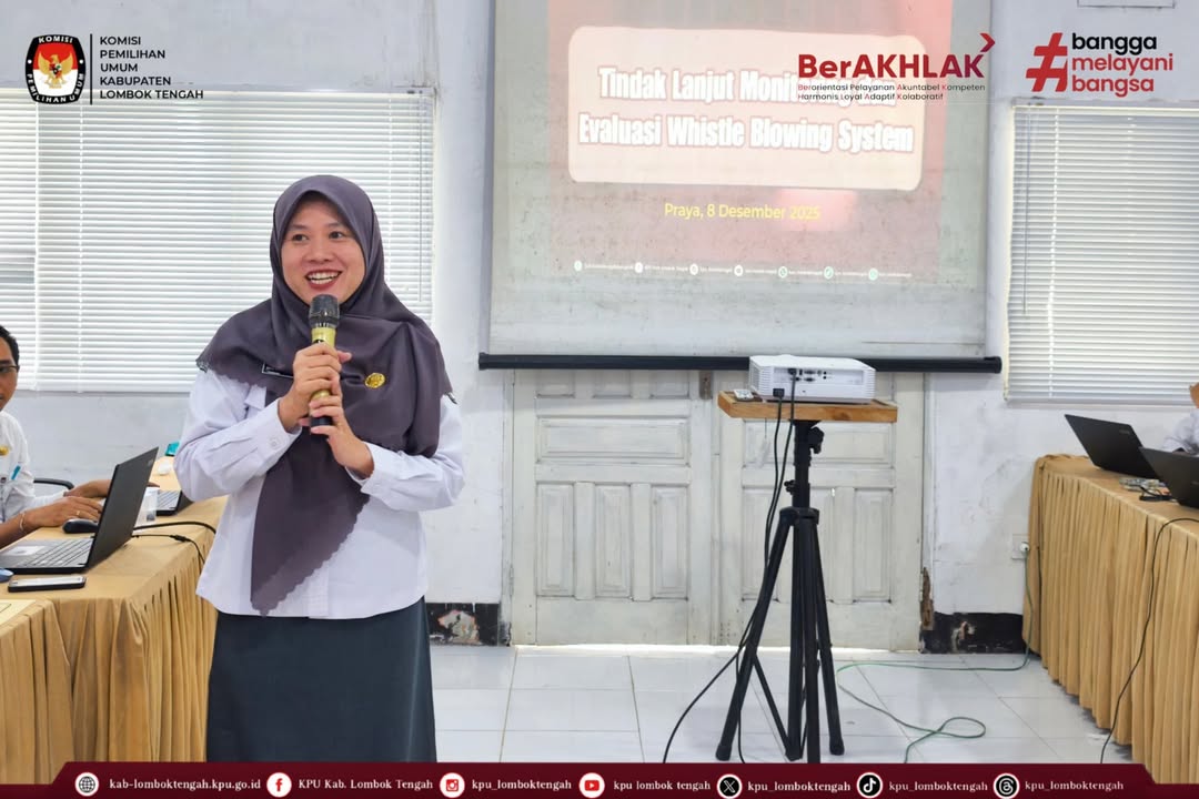 KPU Kabupaten Lombok Tengah melaksanakan tindak lanjut atas hasil Monitoring dan Evaluasi (Monev) Penanganan Whistle Blowing System (WBS) yang dilaksanakan pada Senin (08/12/2025).