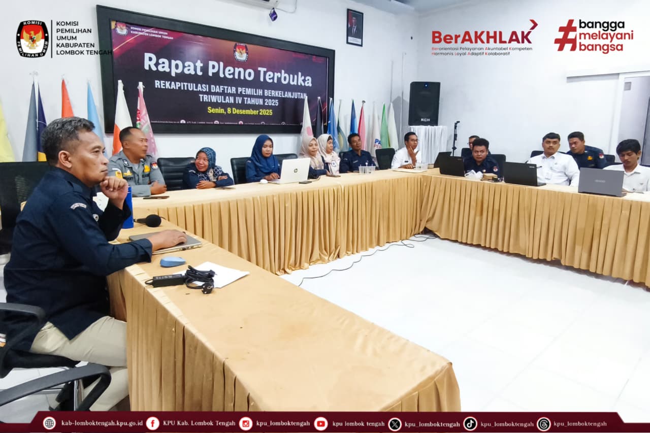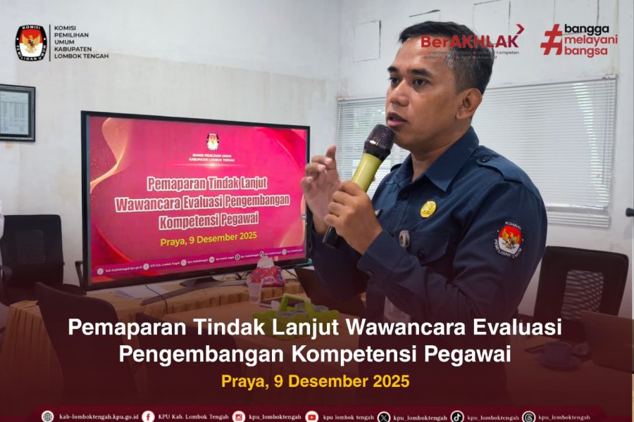 Selasa (09/12/2025), KPU Kabupaten Lombok Tengah melaksanakan tindak lanjut hasil wawancara evaluasi pengembangan kompetensi pegawai yang berlangsung di aula rapat KPU Kabupaten Lombok Tengah.