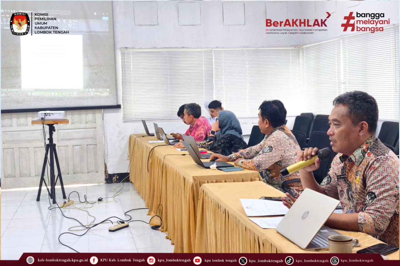 KPU Kabupaten Lombok Tengah mengadakan Rapat Pembahasan Penyusunan Bahan Rapim KPU Provinsi dan KPU Kabupaten/Kota se-Nusa Tenggara Barat pada Jumat (12/12/2025).