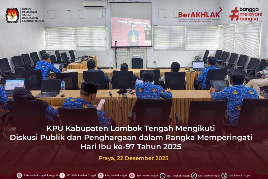 Senin (22/12/2025) KPU Kabupaten Lombok Tengah mengikuti Dialog Publik dalam Rangka Memperingati Hari Ibu ke-97 Tahun 2025 dengan tema “Perempuan Penggerak Perubahan : Perempuan Memimpin, Demokrasi Berkembang”.