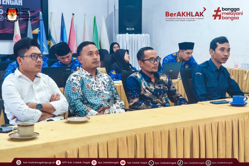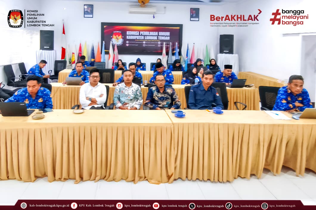 Kegiatan yang diselenggrakan oleh KPU RI ini diikuti oleh Ketua dan Anggota KPU Kabupaten Lombok Tengah, Sekretaris, Kasubbag beserta Staf, secara daring melalui zoom meeting bertempat di aula kantor KPU Kabupaten Lombok Tengah.
