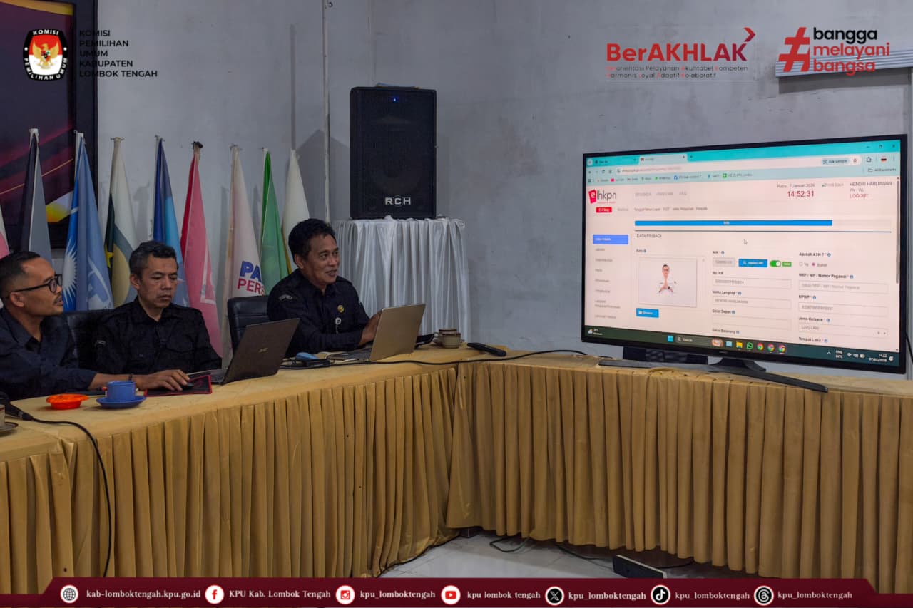 Rabu (07/01/2026) KPU Kabupaten Lombok Tengah mengadakan Rapat Pengisian Laporan Harta Kekayaan Penyelenggara Negara (LHKPN) Tahun 2025 yang dilaksanakan di aula Kantor KPU Kabupaten Lombok Tengah.