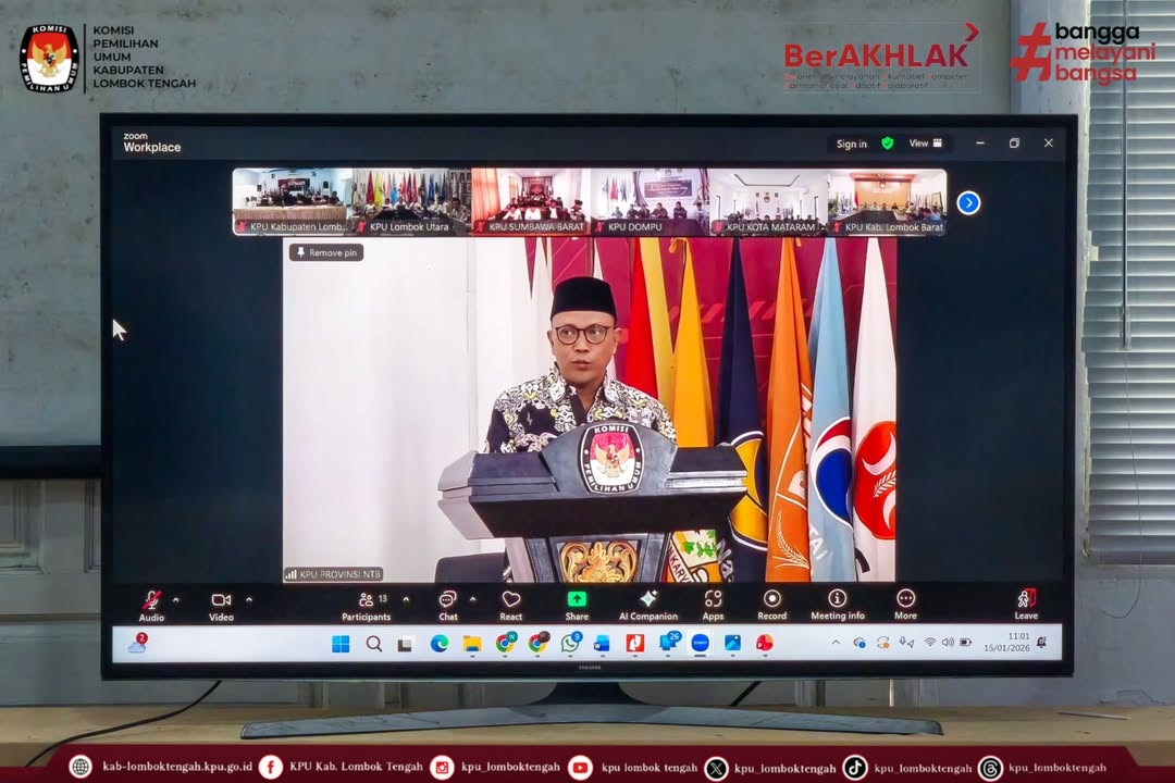 KPU Kabupaten Lombok Tengah mengikuti kegiatan Sosialisasi SP4N-Lapor dan Whistle Blowing System (WBS) yang di selenggarakan oleh KPU Provinsi Nusa Tenggara Barat secara daring melalui Zoom Meeting pada Kamis (15/01/2026).