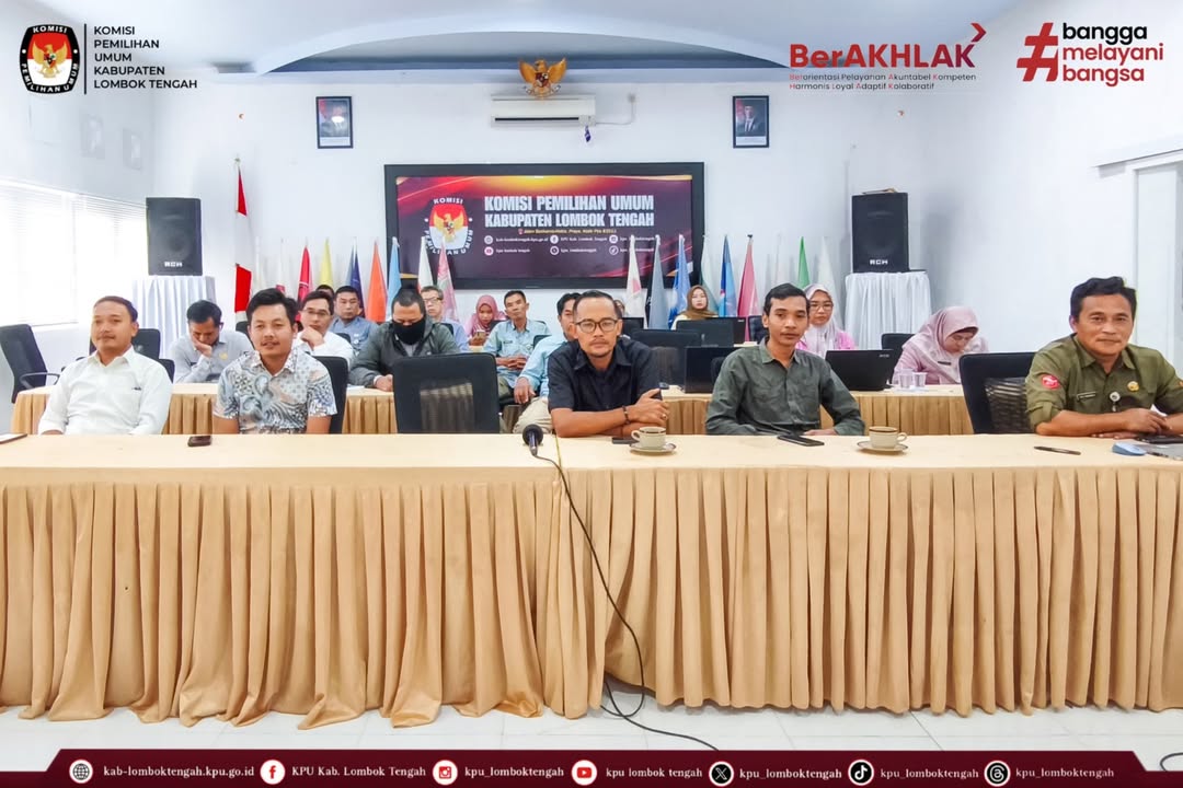 Bertempat di aula kantor KPU Kabupaten Lombok Tengah, hadir dalam kegiatan ini Ketua dan Anggota KPU Kabupaten Lombok Tengah, Sekretaris, para Kasubbag dan seluruh Staf.