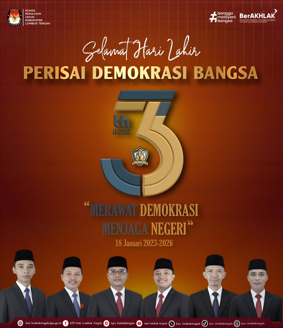 KPU Kabupatan Lombok Tengah Mengucapkan Selamat Hari Lahir Perisai Demokrasi Bangsa