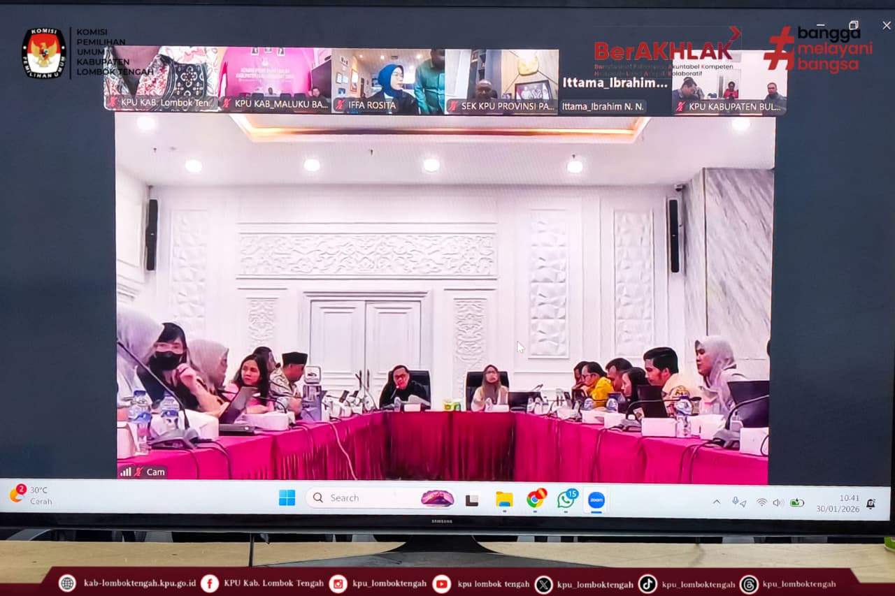 Jumat (30/01/2026) KPU Kabupaten Lombok Tengah mengikuti Rapat Koordinasi Pelaksanaan Penilaian Mandiri Maturitas Penyelenggaraan Sistem Pengendalian Intern Pemerintah (SPIP) Terintegrasi KPU Tahun 2026 yang diselenggarakan oleh KPU RI secara daring melalui zoom meeting.