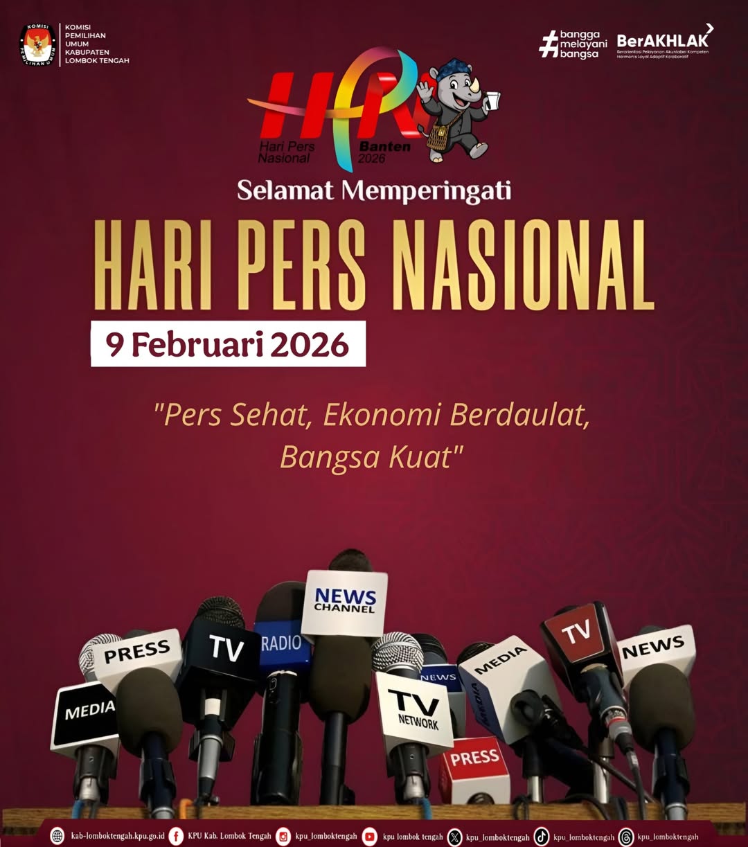 KPU Kabupaten Lombok Tengah mengucapkan Selamat Memperingati Hari Pers Nasional 9 Februari 2026