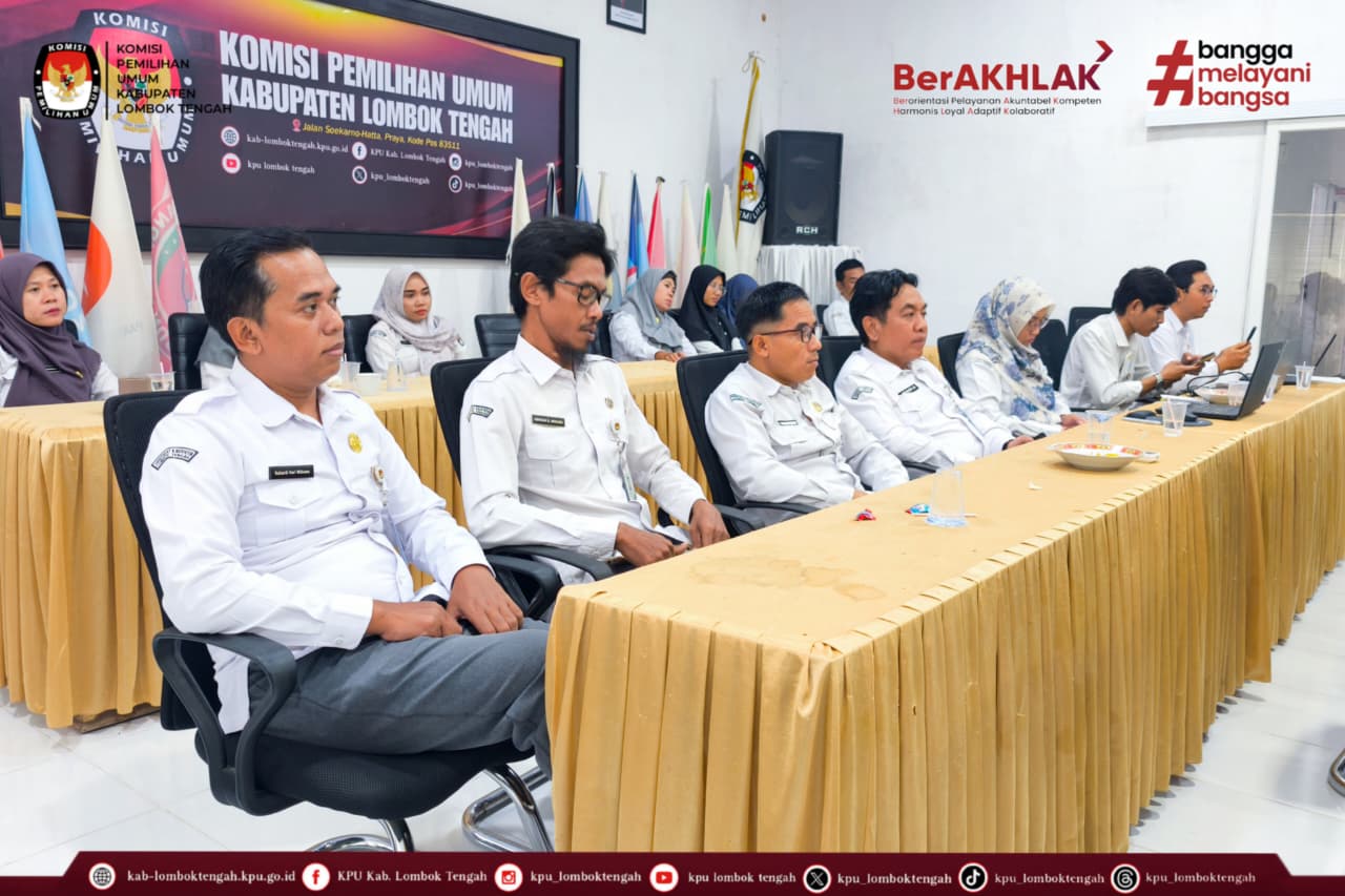 Bertempat di aula kantor KPU Kabupaten Lombok Tengah, hadir dalam kegiatan ini Ketua beserta Anggota KPU Kabupaten Lombok Tengah, Sekretaris, Kasubag dan Staf Sekretariat KPU Kabupaten Lombok Tengah.