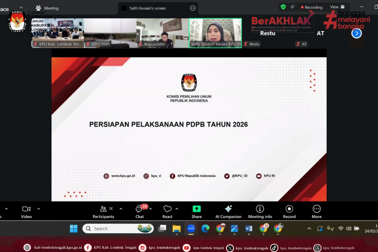 Selasa (24/02/2026) KPU Kabupaten Lombok Tengah Mengikuti Zoom Meeting Rapat Persiapan Pemutakhiran Data Pemilih Berkelanjutan (PDPB) Tahun 2026 yang diselenggarakan oleh KPU RI.