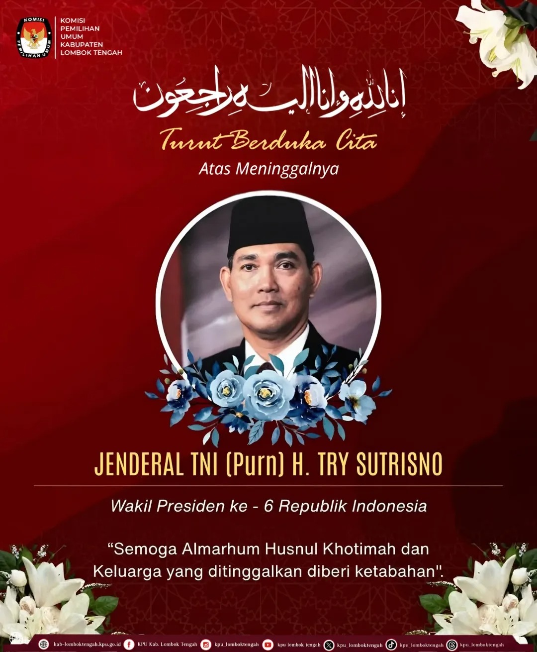 Keluarga besar KPU Kabupaten Lombok Tengah Mengucapkan Turut Berduka Cita Atas Meninggalnya Bapak Jenderal TNI (Purn.) H. Try Sutrisno, Wakil Presiden Ke-6 Republik Indonesia