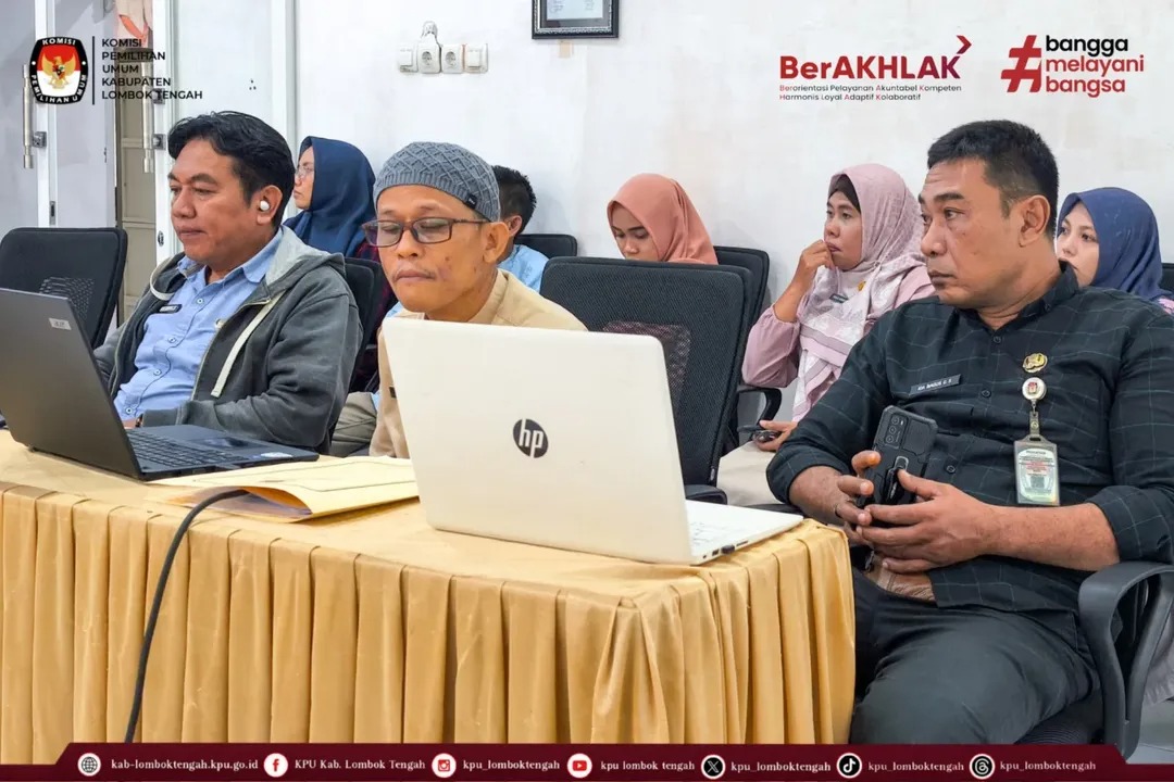 Rapat dipimpin oleh Ketua KPU Kabupaten Lombok Tengah dan dihadiri oleh Anggota KPU, Sekretaris, para Kasubbag, serta Staf.