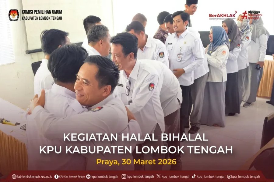 Senin (30/03/2026) Segenap keluarga besar KPU Kabupaten Lombok Tengah menyelenggarakan kegiatan Halal Bihalal dalam rangka merayakan Hari Raya Idul Fitri 1447 Hijriah. Kegiatan yang penuh kehangatan ini berlangsung di Aula Kantor KPU Kabupaten Lombok Tengah.