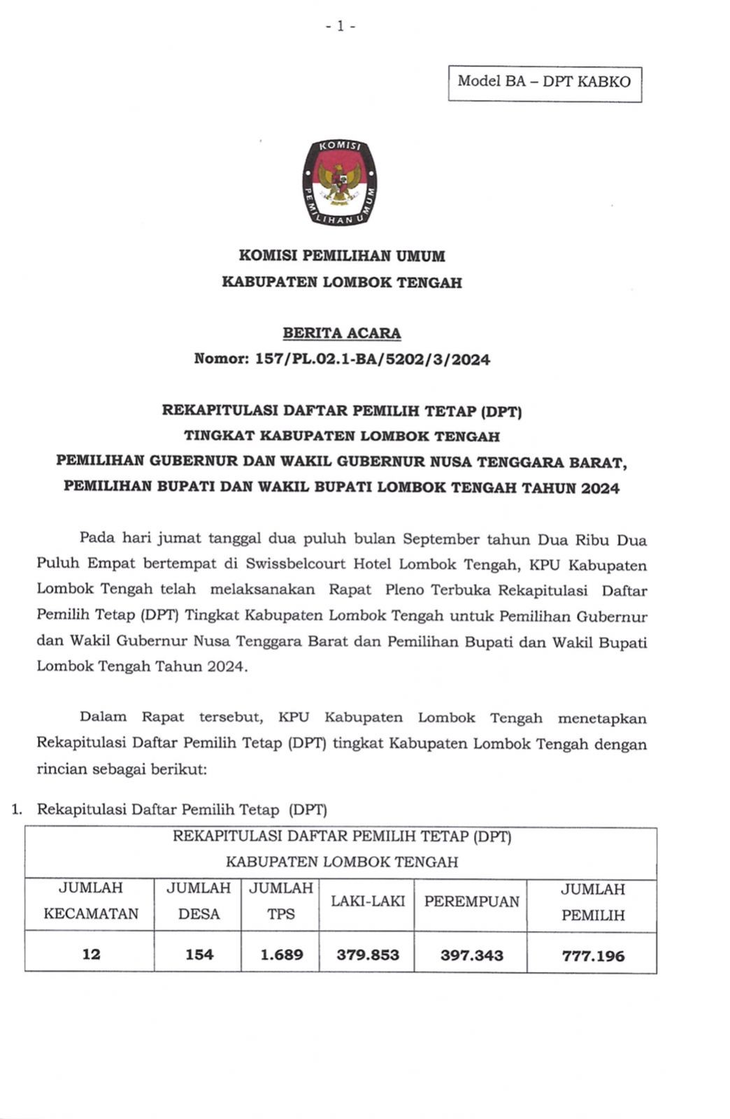 Berita Acara selengkapnya dapat dicek melalui link berikut ini: https://kab-lomboktengah.kpu.go.id/public/kab-lomboktengah/dmdocument/1727053654ba_pleno_dpt_pilkada_loteng_2024_compressed.pdf