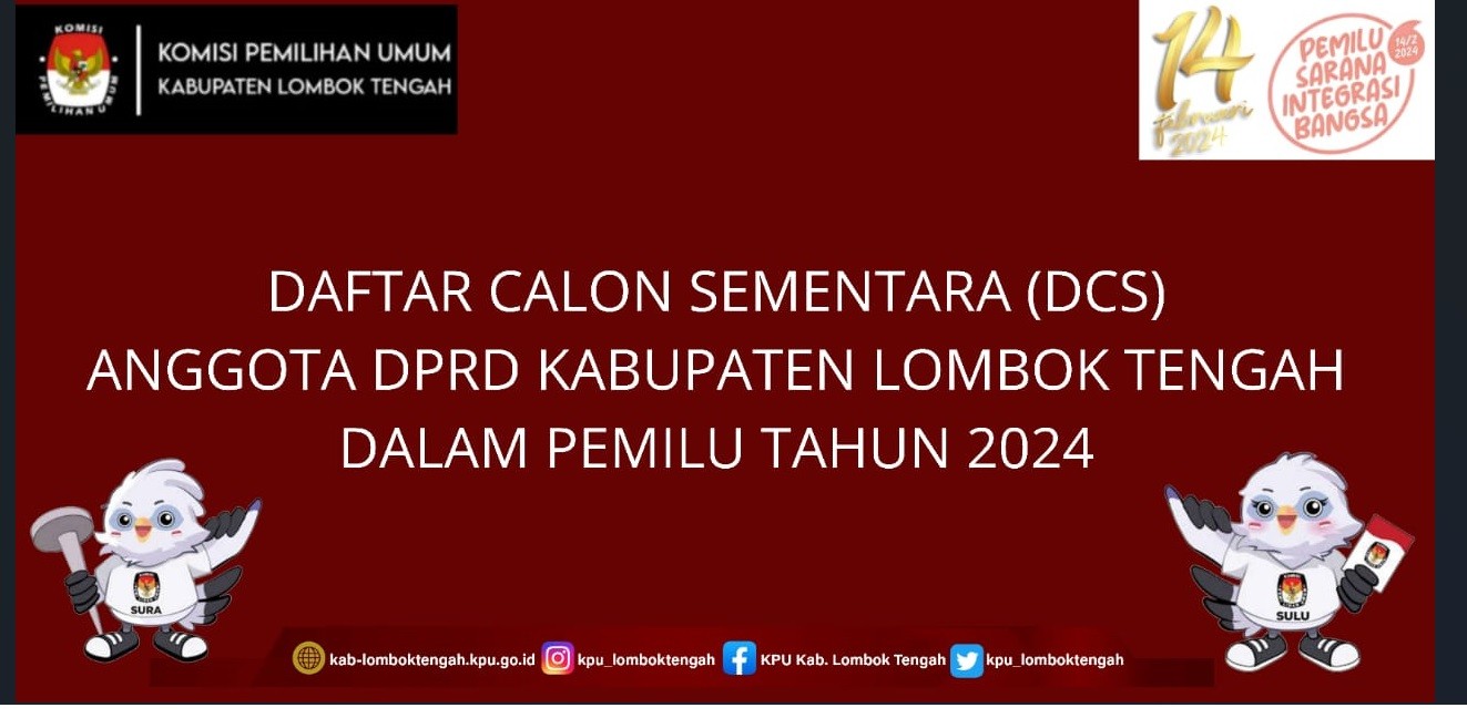 #TemanPemilih Berikut adalah Pengumuman Tentang Daftar Calon Sementara (DCS) Anggota DPRD Kabupaten Lombok Tengah dalam Pemilu Tahun 2024. Untuk melihat pengumuman, silahkan klik tautan berikut ini :