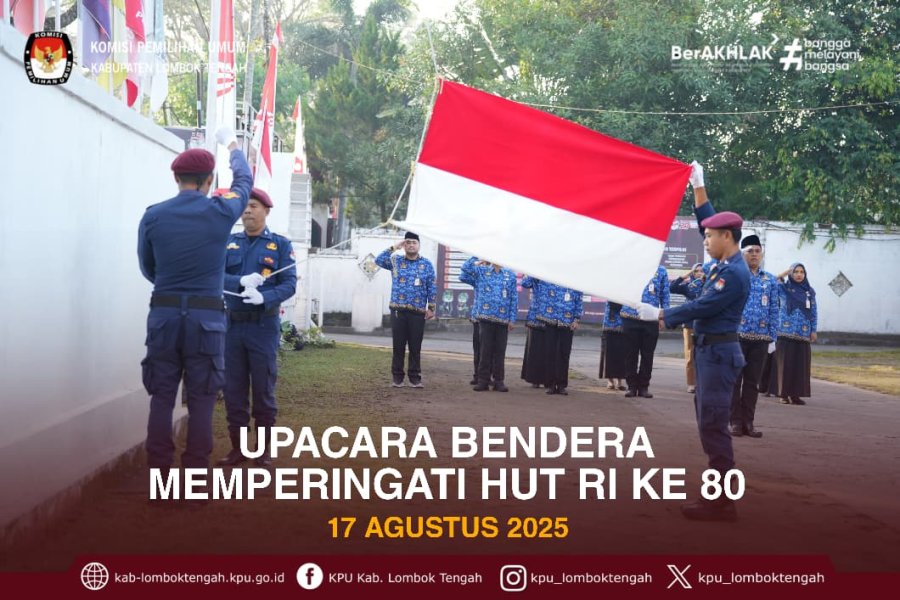 Minggu (17/8/2025) KPU Kabupaten Lombok Tengah melaksanakan Upacara Peringatan HUT ke-80 Kemerdekaan Republik Indonesia Tahun 2025.