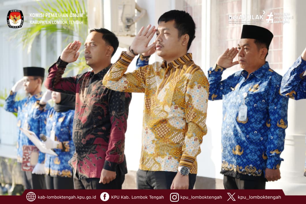 Upacara diikuti oleh Ketua beserta Anggota KPU Kabupaten Lombok Tengah, Sekretaris KPU Kabupaten Lombok Tengah, para Kasubag, dan seluruh staf/pegawai dilingkungan Sekretariat KPU Kabupaten Lombok Tengah.