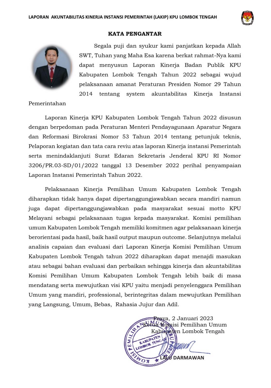 Laporan Akuntabilitas Kinerja Instansi Pemerintah (LAKIP) KPU Kabupaten Lombok Tengah