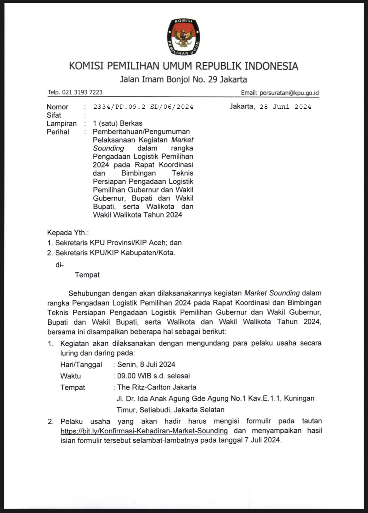Pemberitahuan/Pengumuman Pelaksanaan Kegiatan Market Sounding dalam rangka Pengadaan Logistik Pemilihan Tahun 2024 Kamis, 04 Juli 2024 07:00 929 https://kab-lomboktengah.kpu.go.id/public/kab-lomboktengah/dmdocument/17200804382334 -SD SJ- Pemberitahuan Market Sounding pd Bimtek Pengadaan Pulgub 2024-cp (1).pdf Bagikan: Telah dilihat 929 kali