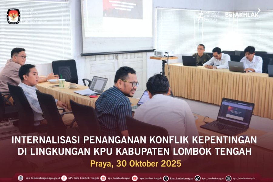 KPU Kabupaten Lombok Tengah menggelar Sosialisasi internal Membangun Budaya Pelayanan Prima dan ASN berAKHLAK, serta sharing knowledge memgenai Kapasitas Keprotokolan. Rabu (29/10/2025).