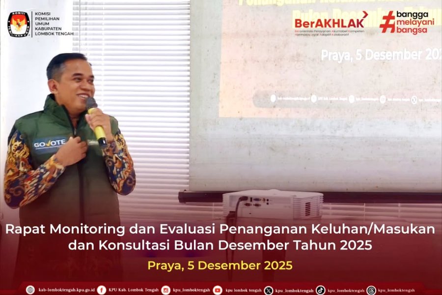 Senin (08/12/2025) KPU Kabupaten Lombok Tengah mengadakan Rapat Pleno Terbuka Rekapitulasi Daftar Pemilih Berkelanjutan Triwulan IV Tahun 2025, bertempat di aula kantor KPU Kabupaten Lombok Tengah.