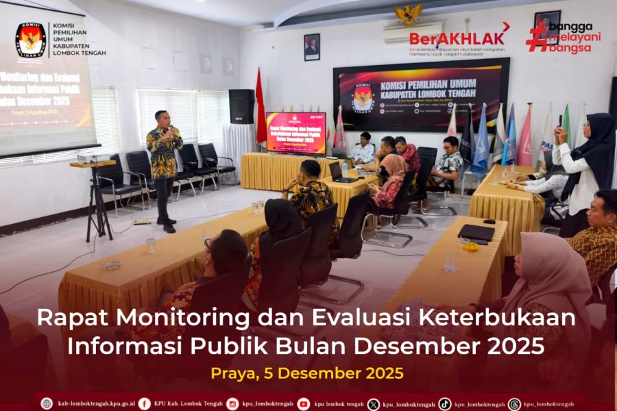 Sebagai upaya untuk meningkatkan transparansi dan akses informasi bagi masyarakat, KPU Kabupaten Lombok Tengah mengadakan Rapat Monitoring dan Evaluasi (Monev) Keterbukaan Informasi Publik Bulan Desember Tahun 2025 pada Jumat (05/12/2025).