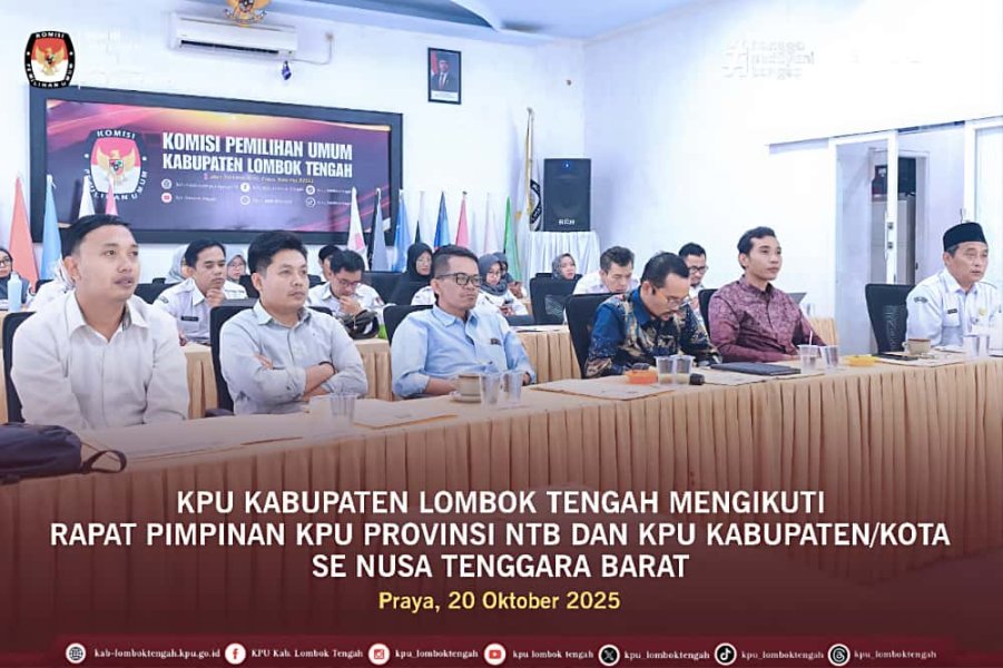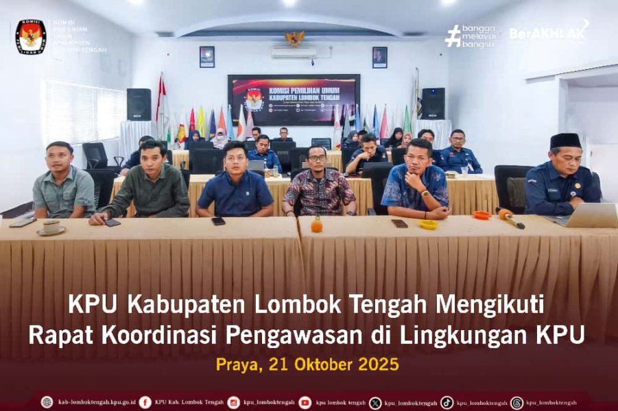 Selasa (21/10/2025) KPU Kabupaten Lombok Tengah mengikuti Rapat Koordinasi Pengawasan di Lingkungan KPU yang diselenggarakan oleh KPU RI secara daring melalui zoom meeting.