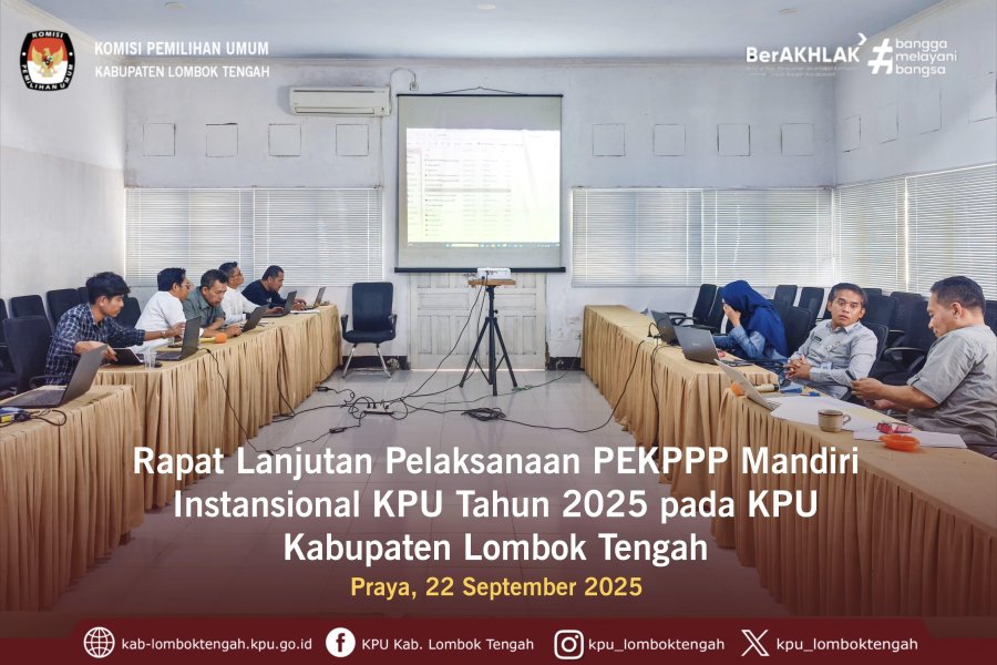 Dihadiri oleh Ketua, Kadiv Perencanaan, Data dan Informasi, Kadiv Hukum dan Pengawasan, Sekretaris, para Kasubbag dan Staf, rapat ini berlangsung di aula kantor KPU Kabupaten Lombok Tengah.