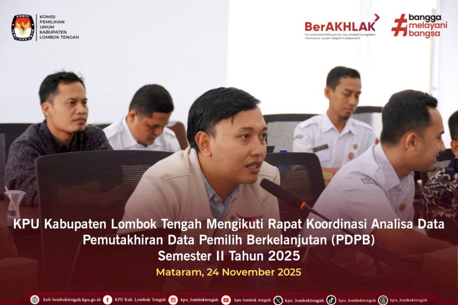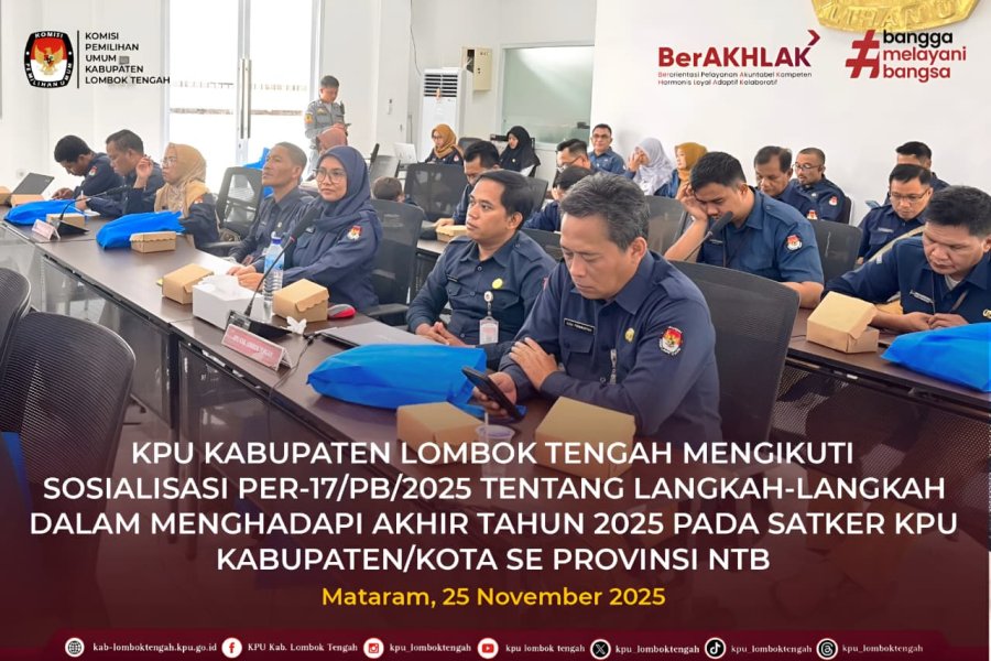 Guna melaksanakan langkah-langkah percepatan pembangunan Zona Integritas (ZI) menuju Wilayah Bebas dari Korupsi (WBK), KPU Kabupaten Lombok Tengah mengadakan rapat pencermatan pengisian dan pemenuhan Lembar Kerja Evaluasi (LKE) ZI, Senin (24/11/2025).
